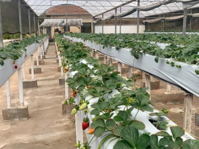 Mas além disso, eles também são especialistas e produtores de Morangos. As estufas são bem impressionantes.