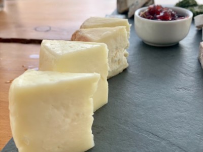 Antes de almoçar, tivemos uma degustação de queijos, todos feitos aqui.